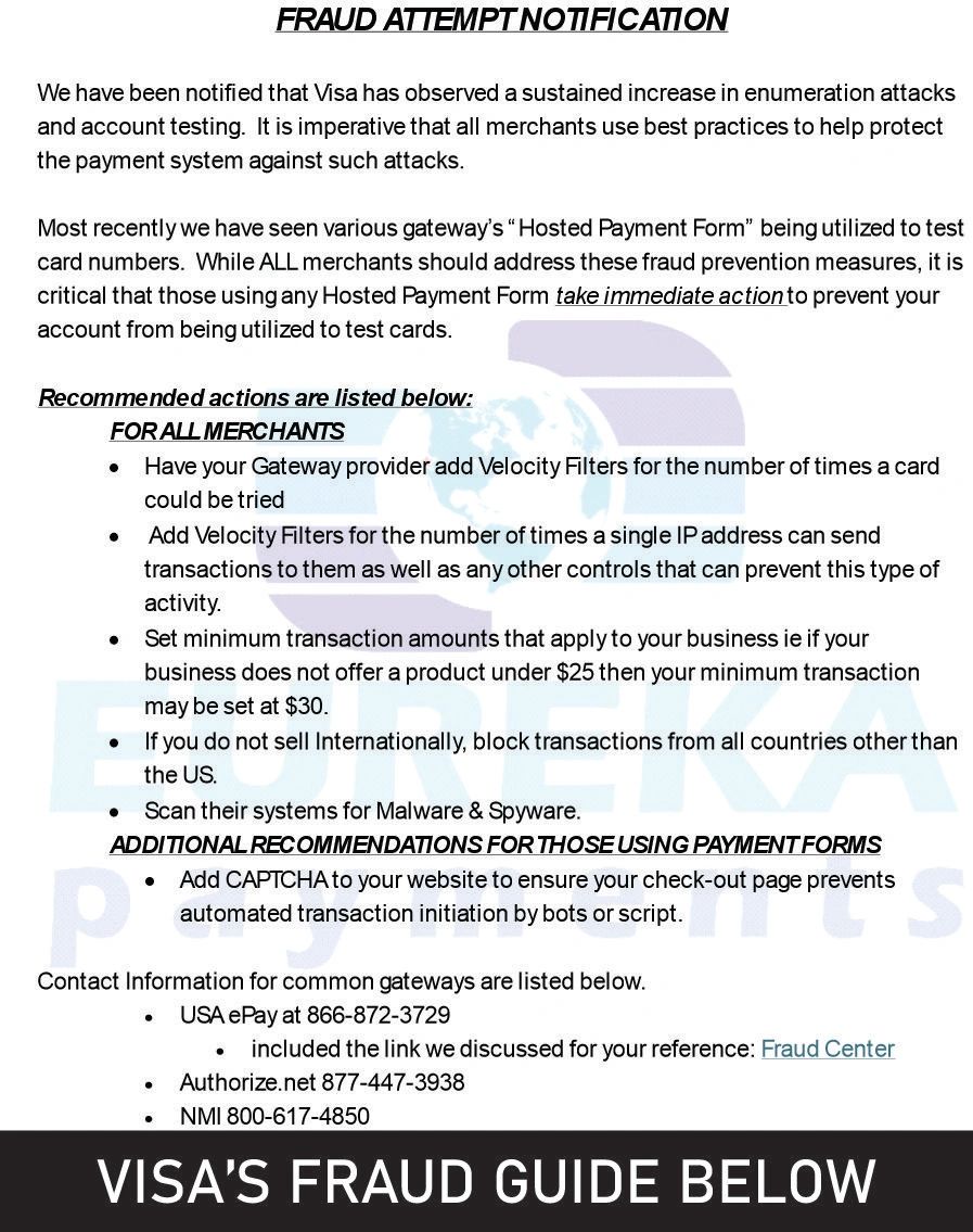 We have been notified that Visa has observed a sustained increase in enumeration attacks and account testing. It is imperative that all merchants use best practices to help protect the payment system against such attacks.